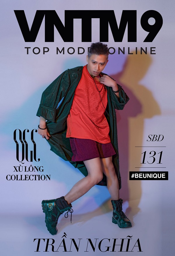 Trang phục mà Trần Nghĩa lựa chọn nằm trong bộ trang phục xù lông. Anh tạo dáng động, thể hiện cảm xúc không hài lòng khi phải khoác lên người bộ trang phục không mang lại cảm giác thoải mái.