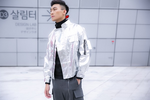 Quán quân The Face Vietnam 2018 yêu thích sự thoải mái, năng động nên đã chọn một chiếc bomber jacket ánh bạc đơn giản nhưng nổi bật, phối cùng áo cổ lọ bên trong để giữ ấm cơ thể. Ngoài ra, Trung Kiên còn diện quần baggy theo phong cách hip hop với điểm nhấn là khả năng “xẻ” ống cao ngút ngàn, vừa ấn tượng lại vừa giúp anh chàng thuận tiện, năng động trong việc di chuyển. Với set đồ đơn giản, Trung Kiên vẫn nổi bật và thu hút nhờ khuôn mặt sáng.