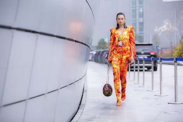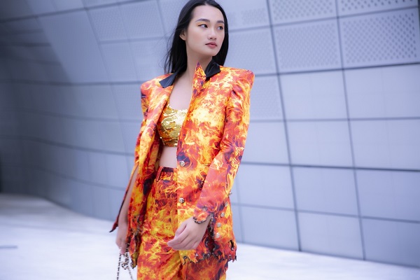 Quỳnh Anh nổi bật trên phố với thiết kế “rực lửa” của một nhà thiết kế Việt Nam. Phong cách menswear mạnh mẽ phối cùng croptop gợi cảm khoe vòng eo nhỏ nhắn khiến Quỳnh Anh càng gây ấn tượng. Trong buổi street style, cô nàng thu hút khá nhiều ống kính của báo chí Hàn Quốc tập trung về phía mình. Hình ảnh của á quân The Face Vietnam 2018 còn bất ngờ “chễm chệ” trên website và tài khoản Instagram của Vogue quốc tế, khiến người hâm mộ càng tự hào.