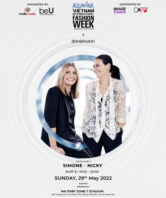 Cùng đón chờ sự trải nghiệm mới mẻ mà thương hiệu Zimmermann sẽ đem đến trong chương trình Aquafina Tuần lễ thời trang Quốc tế Việt Nam Xuân Hè 2022, ngày 29/05/2022 tại Nhà thi đấu Quân khu 7, TP. Hồ Chí Minh. Chương trình sẽ chính thức được diễn ra từ ngày 25-29/05/2022, đặc biệt, những người yêu thời trang hoàn toàn có thể tham gia trực tiếp, đón xem những BST của hàng loạt NTK, Thương hiệu thời trang nổi tiếng trong nước và quốc tế bằng cách mua vé tại nền tảng ticketbox.