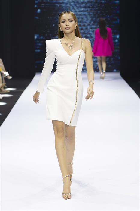 Tiếp nối chương trình, BST The Golden Woman từ thương hiệu IJC – Trang sức đá quý và Vân Anh Scarlet mang đến một màu sắc mới về vẻ đẹp người phụ nữ. Đó là sự nhẹ nhàng, nữ tính nhưng vô cùng toả sáng và tinh tế. Thông qua sự kết hợp giữa các thiết kế nữ tính và những trang sức độc quyền từ Nhà chế tác vương miện của cuộc thi, BST The Golden Woman khiến khán giả mãn nhãn với sự lung linh, sang trọng. Sự kết hợp đầy bất ngờ này đã giúp Vinawoman Fashion Show của Hoa hậu Hoàn Vũ Việt Nam 2022 thăng hoa với nét chấm phá đầy thú vị và hấp dẫn.