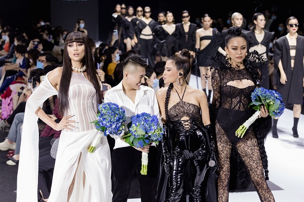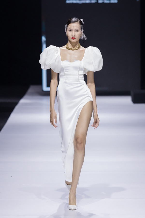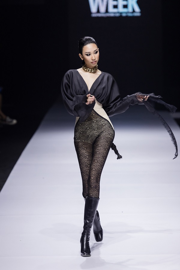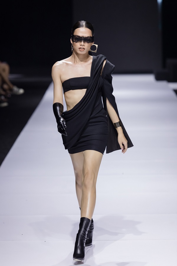 Tạo nên điểm nhấn của BST không thể không nhắc đến dàn người mẫu trong những thiết kế ấn tượng. Trong những bộ trang phục sang trọng được cut-out tinh tế đã tôn lên được đường cong quyến rũ của người phụ nữ. Đặc biệt hơn khi dàn người mẫu còn bịt mắt catwalk trên sàn diễn chuyên nghiệp càng khiến cho show thời trang của NTK LONG NG thêm phần ấn tượng.