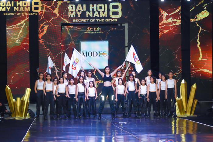 Diện chiếc đầm cách điệu được cắt xẻ khá táo bạo, người mẫu nhí Bảo Nguyên đã ''ra dáng'' hơn vài năm trước trên thảm đỏ, tự tin sải bước cạnh CEO Đức Tiến Jewelry. Lần này cô không xuất hiện với vai trò người mẫu của chương trình, mà là gương mặt đại diện cho Thương hiệu trang sức Đức Tiến - Nhà tài trợ chính của Đại hội mỹ nam 8.