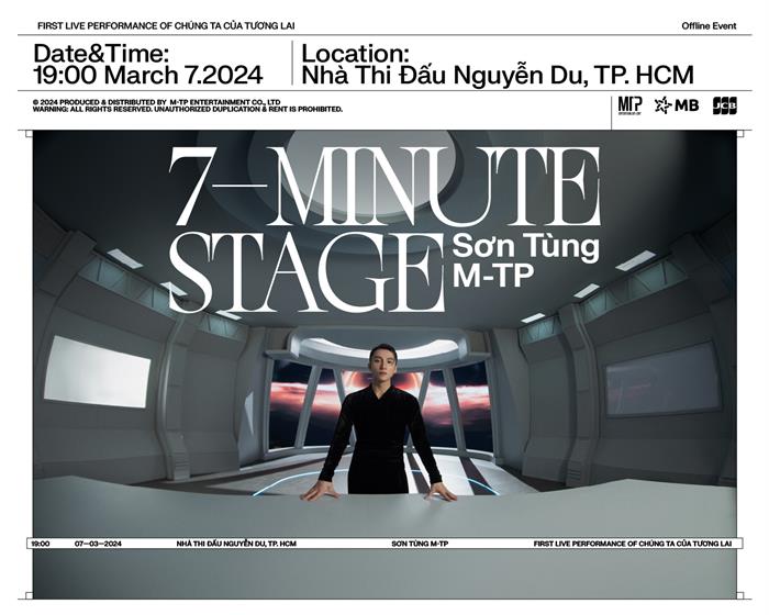“7-MINUTE STAGE” được ấn định thời gian tổ chức vào lúc 19h00 ngày 07/03/2024, tại Nhà thi đấu Nguyễn Du (TP.HCM). Đây cũng chính là sự kiện OFFLINE EVENT được nam nghệ sĩ thông báo trước đó.