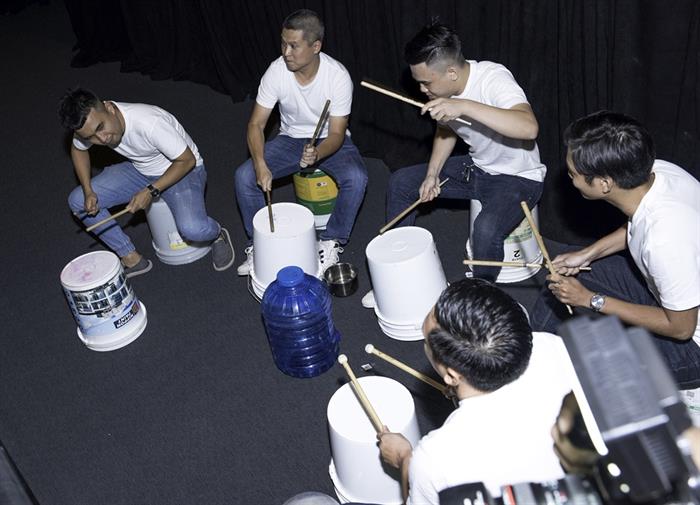 Đặc biệt tại buổi họp báo, giới truyền thông và khách mời có mặt vô cùng bất ngờ bởi màn tái hiện “20 giây dụng cụ lao động” sôi nổi từ nhóm Vocalno trong MV. Suốt khoảng hơn 5 phút với màn trình diễn này, cả khán phòng như bị cuốn theo từng nhịp điệu hấp dẫn chỉ bằng những chiếc thùng nhựa nhưng lại mang tới một không gian âm nhạc đầy cảm xúc. Khúc nhạc này cũng có thể xem là đoạn “đinh” nhất nhì trong MV khi mà bất kỳ ai cũng phải ngạc nhiên vì những âm thanh quen thuộc của cuộc sống lại có thể đem tới giai điệu mới lạ như vậy. MV với sự góp mặt của dàn nghệ sĩ hot nhất nhì Vpop hứa hẹn là sản phẩm “gây bão” trong thời điểm cuối năm 2018.