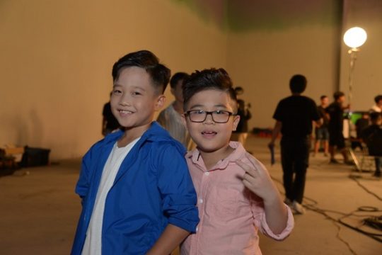 Hai chàng hot boy nhí của top 12 – Minh Kỳ (áo xanh) và Quốc Dương vô tư đọ vẻ đáng yêu sau khi hoàn thành phần thi của mình.