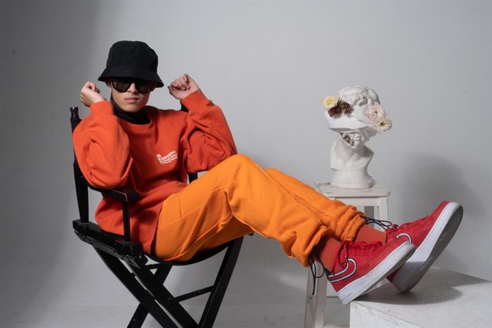 Wren Evans đã khéo léo mix match trang phục tone màu cam neon vô cùng ăn ý với những phụ kiện đi kèm như mũ, mắt kính, giày... Tạo nên tổng thể vừa năng động, tinh nghịch nhưng không kém phần “cool ngầu” của một nam sinh lớp 12.