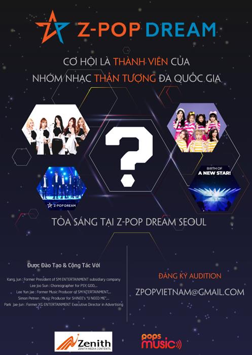 Ngay bây giờ, cơ hội hấp dẫn giúp bạn trẻ trở thành ngôi sao này đã chính thức “đổ bộ” vào Việt Nam trong khuôn khổ dự án Z - POP Dream, được sáng lập bởi các chuyên gia đã tạo nên tên tuổi cho hàng loạt thần tượng nổi tiếng xuyên biên giới kể trên.