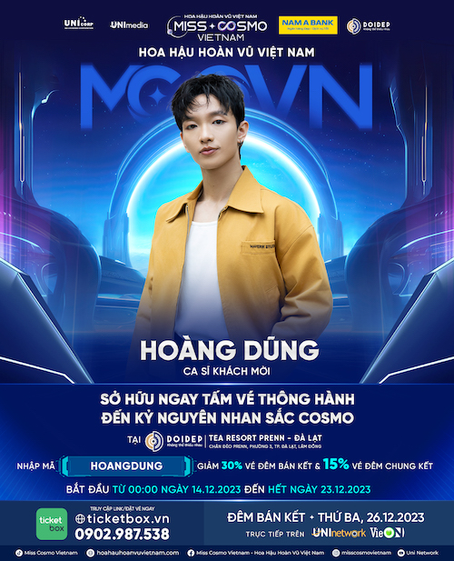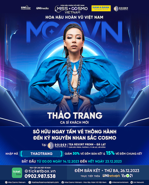 Để mang tới một bữa tiệc hoành tráng, mãn nhãn, mới đây, Ban tổ chức Hoa hậu Hoàn vũ Việt Nam – Miss Cosmo Vietnam 2023 đã chính thức công bố ba giọng hát đang được yêu thích sẽ góp mặt tại đêm Bán kết sắp tới đó là ca sĩ Thảo Trang, ca sĩ Hoàng Dũng và ca sĩ Lamoon.