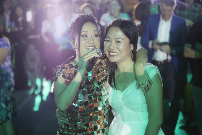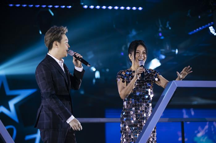 Không gian của Dạ tiệc ngôi sao - Stars By Night Party nổi bật nhờ phong cách trang trọng, thanh lịch và hiện đại. Bên cạnh đó, với màn xuất hiện lần lượt của những ca sĩ hàng đầu càng khiến khán giả hào hứng dõi theo. Trên sân khấu sự kiện âm nhạc chuyên nghiệp với chủ đề “Làn Sóng Xanh’s Hit”, Hồng Nhung cũng hòa giọng cùng Lê Hiếu mang đến ca khúc “Tình yêu tôi hát” đầy tình cảm. Trước khi song ca mãn nhãn thính giác lẫn thị giác với đàn chị, ca sĩ Lê Hiếu đã hâm nóng bầu không khí bằng 3 bài hát liên tiếp là “Em về tinh khôi”, “Tim anh trôi về em”, “Vài lần đón đưa”.