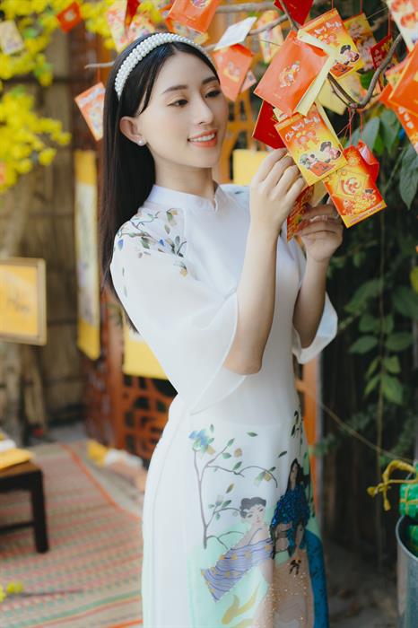 Điều mà Kỳ Anh háo hức nhất là được hái lộc và nhận lì xì đầu năm. Vì vẫn còn nhỏ lắm (cười) nên năm nào cũng xung phong thức dậy rất sớm ngay mùng 1, xuất hiện với thần thái đẹp nhất chúc Tết ba mẹ để nhận lộc may mắn đầu năm. Mình mong dù sau này có lập gia đình thì vẫn được ba mẹ lì xì lấy lộc để có một năm luôn may mắn (cười)” - Kỳ Anh chia sẻ.