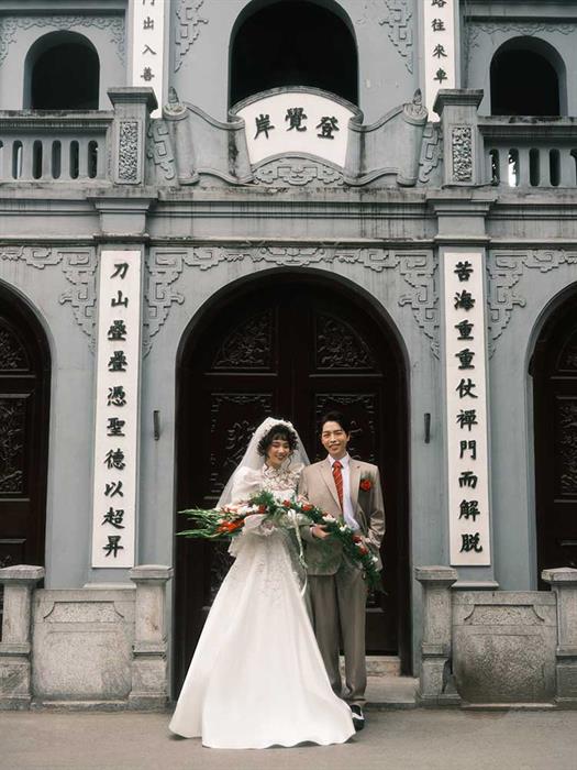 Từ trang phục của cô dâu chú rể cho đến khách mời trong đám cưới cũng mang dấu ấn thời xưa và đậm phong cách hoài cổ. Chú rể Đức Phúc còn giữ nguyên dấu ấn hề hước đặc trưng của mình bằng chiếc mái trái tim, cho thấy quyết tâm tìm kiếm tình yêu trên mọi hình thức. Đặc biệt giây phút Đức Phúc “xin vía cực mạnh” tại cổng chùa cũng là điểm nhấn gây nhiều thích thú. Ít ai có ngờ, “ông hoàng nhạc Valentine" se duyên cho rất nhiều cặp đôi lại rơi vào cảnh đi chùa cầu duyên mới may mắn gặp được “ý trung nhân".