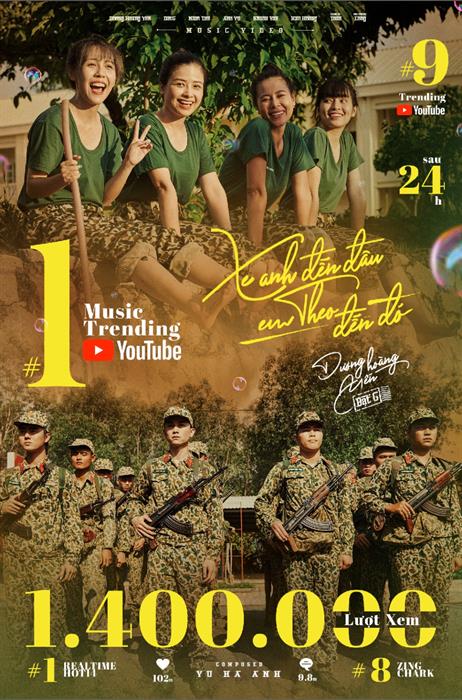 Với tất cả sự chỉn chu này, chỉ sau 24 giờ phát hành, MV “Xe Anh Đến Đâu, Em Theo Đến Đó” đã công phá Top Trending âm nhạc. Cụ thể, MV leo thẳng Top 1 Trending Youtube Âm Nhạc Việt Nam với 1,4 triệu lượt xem, 102.000 likes, 9.800 comments và Top 9 Trending Youtube Việt Nam; No.1 realtime BXH HOT14; #8 Zing chart.