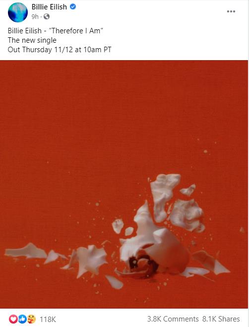Đáng tiếc, giới mộ điệu không biết được quá nhiều thông tin về sản phẩm mới của cô nàng. Các fan cũng trong trạng thái đứng ngồi không yên vì động thái “nhử” fan không giống ai từ Billie Eilish. Vỏn vẹn tên bài mới "Therefore I Am", cùng khung giờ phát hành chính thức lúc 10AM (PT) ngày 12/11 (tức ngày 13/11, 1AM, theo giờ Việt Nam). Tất cả những gì khán giả có được là việc một single mới sẽ ra mắt, và đâu đó là “màu sắc của bài hát, “vibe” mà ca khúc sẽ mang lại.