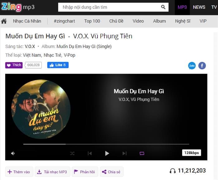 Thời gian vừa qua, bản HIT chục triệu view 'Muốn dụ em hay gì' của nam ca sỹ gốc Việt V.O.X kết hợp cùng Vũ Phụng Tiên đã liên tiếp làm mưa làm gió trên bảng xếp hạng Zing Chart trong nhiều tuần liền và vươn lên hơn chục triệu view trên Zing.