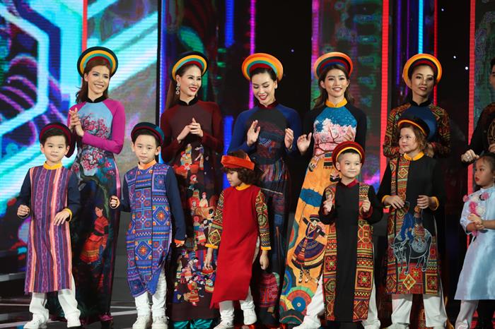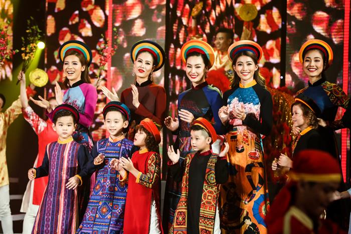 Minh Tú yểu điểu thục nữ cùng Phí Phương Anh và dàn người mẫu tên tuổi trình diễn áo dài trong Gala Nhạc Việt