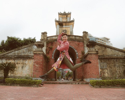 BST “Đại sứ Áo dài Việt Nam” của NTK Việt Hùng mà Ca sỹ Quốc Đại diện trên mình được chụp trên dòng sông Son và trên những thành quách đã ghi tạc dấu ấn thời gian của mảnh đất kinh kỳ xưa Quảng Bình.