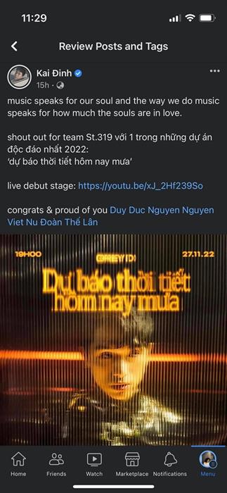 Mới đây, GREY D đã phát hành Debut Stage ‘dự báo thời tiết hôm nay mưa’, đây cũng là MV chính thức được quay hình trực tiếp tại sự kiện diễn ra vào ngày 22/11 vừa qua. Không chỉ là một sân khấu trình diễn đơn thuần, GREY D cùng đội ngũ của ST.319 Entertainment đã mang không gian, môi trường trong ca khúc ra ngoài, để khán giả thực sự chìm đắm vào âm nhạc và trở thành một phần không thể thiếu của bài hát.