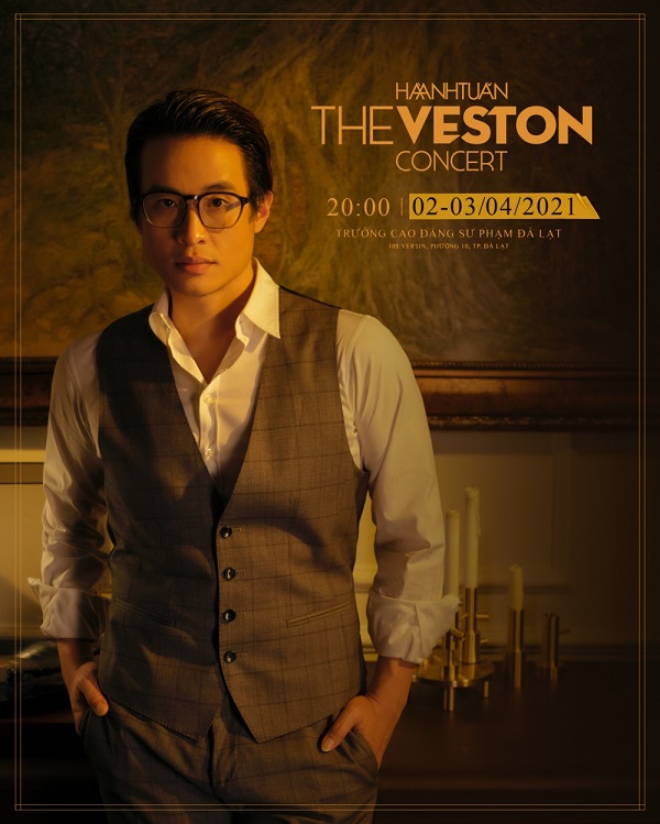 Tối 7/2, Hà Anh Tuấn đã tổ chức buổi giao lưu trực tuyến để có cơ hội trò chuyện với các khán giả đang nôn nóng cho 2 đêm diễn sắp tới. Theo BTC, lịch diễn mới của “THE VESTON CONCERT 2021” sẽ diễn ra vào ngày 02 và 03/04/2021 vẫn tại trường Cao Đẳng Sư Phạm Đà Lạt. Nam ca sĩ đồng thời gửi lời xin lỗi đến các khán giả đã chờ đợi đêm concert này từ rất lâu. Hà Anh Tuấn cũng không quên gửi lời cảm ơn đến các y bác sĩ, những người lính đang ở tuyến đầu để chiến đấu hàng ngày với dịch bệnh Covid-19.