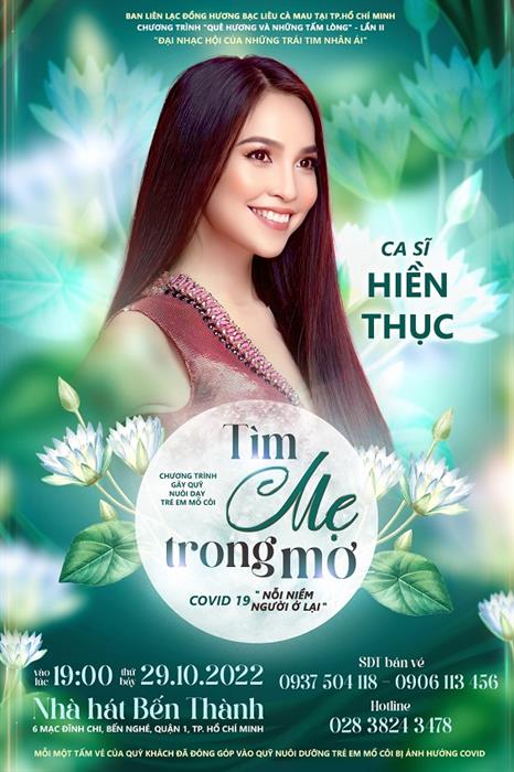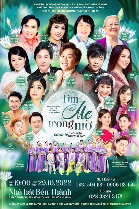 Đại nhạc hội “Tìm mẹ trong mơ” do Ban liên lạc đồng hương Bạc Liêu – Cà Mau tại TP HCM tổ chức để gây quỹ nuôi dưỡng, chăm sóc 150 trẻ em mồ côi trong đại dịch Covid-19 đến năm 18 tuổi, từ đó tạo điều kiện tiếp thêm nghị lực cho những mảnh đời bất hạnh để các em vượt lên nghịch cảnh, sống tốt và mai sau trở thành công dân có ích cho gia đình và xã hội.