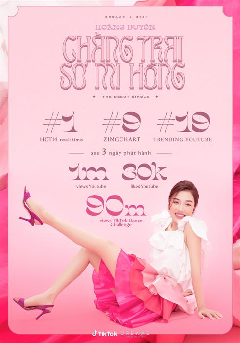 Sau 3 ngày lên sóng, Hoàng Duyên đã gặt hái nhiều thành tích ấn tượng với một tân binh vừa “chào sân”: MV Chàng Trai Sơ Mi Hồng hiện tại giữ vị trí Top 19 Trending trên Youtube với hơn 1.3 triệu lượt xem, 33 ngàn lượt thích. Đặc biệt, ca khúc Chàng Trai Sơ Mi Hồng cũng thành công chiếm lĩnh thứ hạng đầu tiên của bảng xếp hạng Hot14 real:time và Top 9 trên ZingChart của ZingMP3.