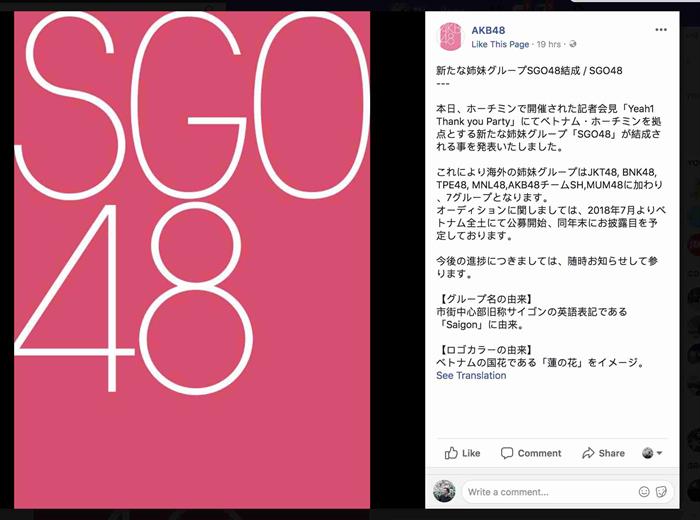 Được biết, sau khi về Việt Nam, nhóm sẽ có tên là SGO 48 (viết tắt của Sài Gòn 48). Không chỉ vậy, đây sẽ là nhóm nhỏ thứ 6 của AKB48 được quảng bá tại các nước châu Á, sau JKT48 tại Indonesia, BNK48 tại Thái Lan, TPE48 tại Đài Loan, MNL48 tại Philippines và MUM48 tại Ấn Độ.