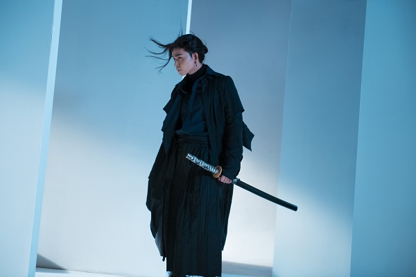 Cùng với đó, phong cách thời trang của Jun Phạm cũng có sự đổi mới nhằm phù hợp với concept đặc biệt. Anh diện bộ trang phục đen, mái tóc búi cao cùng vũ khí là thanh kiếm dài mang bên mình.