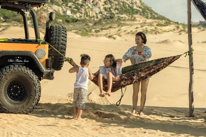 Khi lên kế hoạch cho mùa hè của ba mẹ con, vì quá ấn tượng trước những khung cảnh hùng vĩ và tràn đầy sức sống của dải đất duyên hải miền Trung, tôi đã có một quyết định táo bạo nhưng vô cùng đúng đắn là nhờ vài người bạn đồng hành và ghi lại tất cả hành trình. Chúng tôi đã có những trải nghiệm kì thú khi lần đầu ngủ qua đêm trên bãi biển với lều, đi kiếm củi nướng cá, bơi thuyền, lặn san hô, ngủ trưa trong những mái nhà tạm đơn sơ mà lộng gió của người dân địa phương, chơi với các con vật chúng tôi gặp trên đường, hái nho, săn cá…”