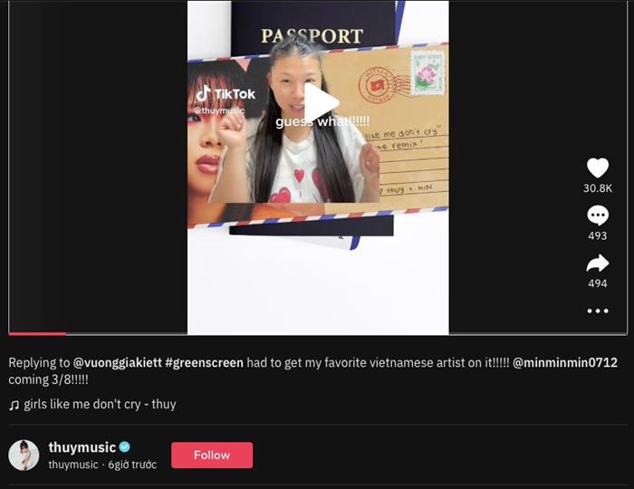 Theo đó sản phẩm âm nhạc lần này được MIN kết hợp với nữ nghệ sĩ gốc Việt - Thuy cùng bản remix ca khúc gây “bão” TikTok thời gian gần đây mang tên “girls like me don't cry”.