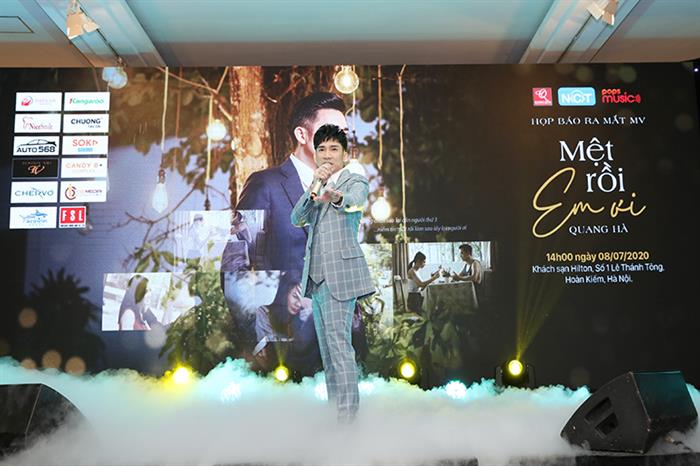 Tintuc - Chiều ngày 8/7, Quang Hà chính thức ra mắt MV mới mang tên Mệt rồi em ơi trong buổi họp báo tại khách sạn Hilton - Hà Nội sau khi tạm ngưng giãn cách xã hội do dịch Covid-19.