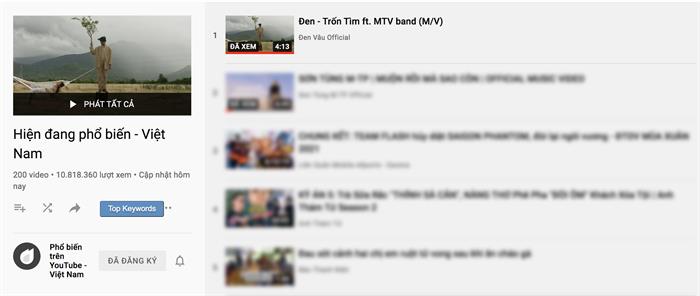 Tintuc - Tối ngày 14/5, sản phẩm âm nhạc Trốn Tìm của Đen Vâu đã chính thức giành Top 1 Trending của YouTube Việt Nam sau 26 tiếng phát hành.