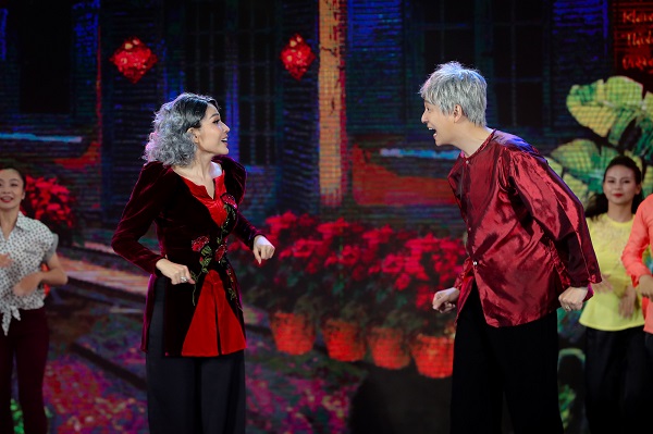 Dù là diễn viên, nhưng lần đầu tham gia Gala Nhạc Việt, cặp đôi Ốc Thanh Vân cùng Hòa Hiệp đã thử sức và thể hiện tốt khả năng ca hát. Cả hai mang đến liên khúc Tình duyên đầu năm được dàn dựng công phu và đẹp mắt với chợ Xuân ngày Tết trên sân khấu.