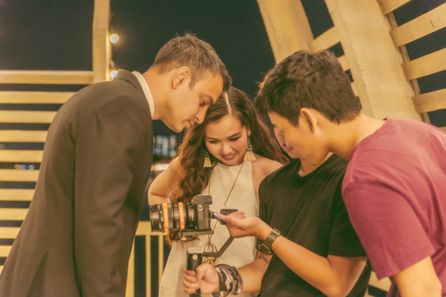 Đúng ngày giờ quay, bạn chồng off nửa ngày làm, chuẩn bị tươm tất quần áo đến địa điểm quay và cứ chờ đợi đến phân đoạn của mình. Bạn chẳng bao giờ than vãn, trách vợ sao quay lâu quá mà cứ đứng đó âm thầm nhìn vợ làm việc ,không quên mỉm cười khi vợ nhìn trộm bạn.