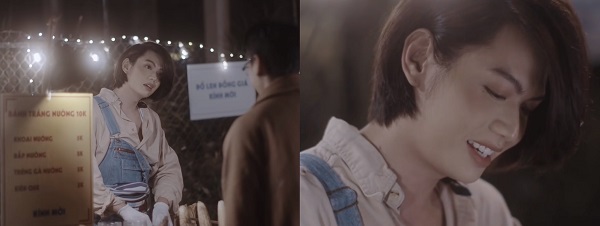 Trong MV, Đào Bá Lộc hoá thân thành một anh chàng bán bánh tráng nướng với vẻ đẹp ngất ngây, đôi mắt sắc sảo, bờ môi cong, da không tì vết khiến nam chính “đổ gục” (do diễn viên Ngọc Thuận thủ vai).