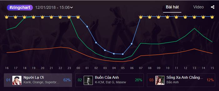 Chỉ sau 5 ngày ra mắt, “Người lạ ơi” của Karik, Superbrothers và Orange đã “làm mưa làm gió” trong cộng đồng yêu nhạc với gần 50 triệu lượt nghe trên Zing MP3 và 100 lần chạm đỉnh Zing. Liệu Karik với “Ai ngờ ta còn thương” có thể vượt qua các đối thủ “nặng ký” khác như Huỳnh James, Đen, Tiên Tiên, hay Sơn Tùng M-TP và chiến thắng tại ZMA 2017? Câu hỏi sẽ được giải đáp tại Gala trao giải ZMA diễn ra vào 24/01/2018 tại nhà hát Hòa Bình.