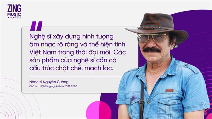 Tiêu chí chọn ra Nghệ sĩ của năm tại ZMA của nhạc sĩ Nguyễn Cường: “Nghệ sĩ xây dựng hình tượng âm nhạc rõ ràng và thể hiện tính Việt Nam trong thời đại mới. Các sản phẩm của nghệ sĩ cần có cấu trúc chặt chẽ, mạch lạc".