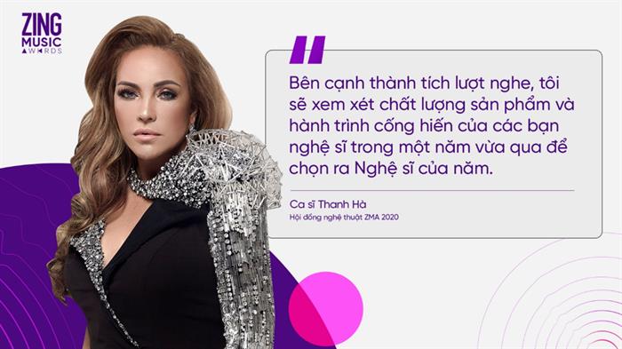 “Bên cạnh thành tích lượt nghe, tôi sẽ xem xét chất lượng sản phẩm và hành trình cống hiến của các bạn nghệ sĩ trong một năm vừa qua”, ca sĩ Thanh Hà chia sẻ tiêu chí đánh giá Nghệ sĩ của năm tại ZMA 2020.