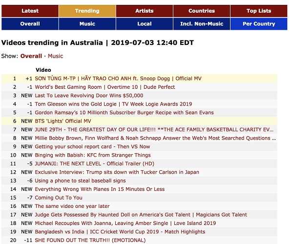 Tapchisaoviet - Vào cuối ngày 2/7, tiếp tục nối dài chuỗi thành tích khủng, “Hãy trao cho anh” vượt biên sang lãnh địa nước Úc và sở hữu luôn vị trí No.1 trending Youtube nơi đây.