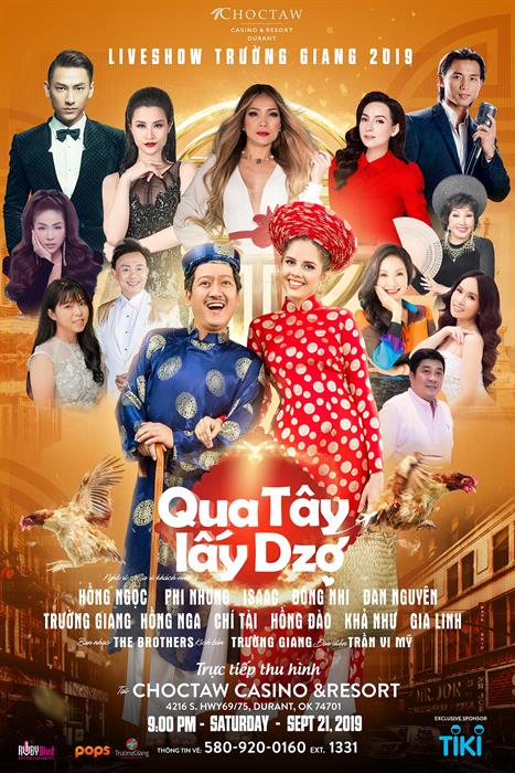 Tintuc - Sau thời gian ấp ủ, ngày 21/09/2019 tới, “Liveshow Trường Giang 2019 - Qua Tây Lấy Dzợ” sẽ chính thức diễn ra tại Choctaw Casino & Resort, chào đón hơn 4000 nghìn khán giả đến thưởng thức chương trình.