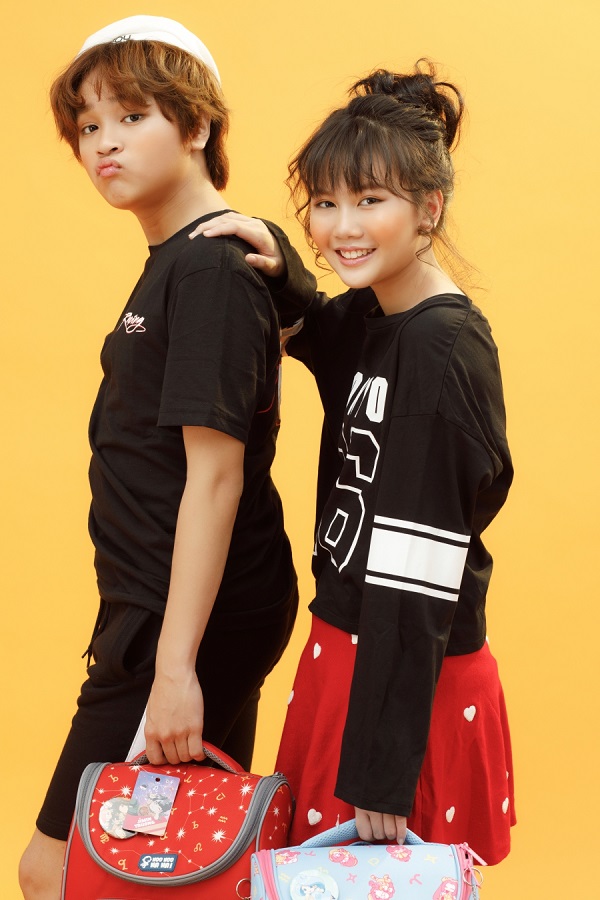Thiên Khôi chia sẻ cậu bé luôn chọn những trang phục mang “hơi thở” đường phố, thoải mái và tiện dụng với màu sắc tươi sáng. Bảo An thì lại thích diện váy hoa nhẹ nhàng, thêm thắt phụ kiện nhỏ xinh giúp khoe được nét nữ tính của con gái.