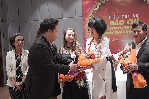 Ca sĩ Quang Lê và Phương Mỹ Chi tặng hoa tri ân những người bạn đồng hành rất đặc biệt