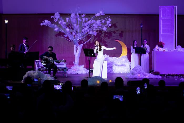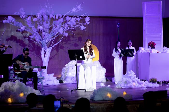 Mở đầu họp báo Vy Oanh, Mc Anh Quân và diễn viên Nam Thư thể hiện hoạt cảnh lớp học mùa tựu trường. Mc Anh Quân hoá thân làm thầy giáo, điểm danh các học trò trong lớp họp nhạc viện. Sau màn giới thiệu đầy thú vị, Vy Oanh mở màn cùng band nhạc hát live các ca khúc: Tuổi mộng mơ, Ngày xưa hoàng thị, Tuyết Rơi, 20 năm tình cũ, Lại gần hôn anh, mưa trên biển vắng và đồng xanh.