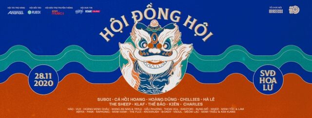 HỘI – ĐỒNG – HỘI quy tụ hàng loạt nghệ sĩ nổi đình đám như Suboi, Cá Hồi Hoang, Chillies, Hoàng Dũng, THE SHEEP, Hà Lê & Ban Nhạc Màu Nước, Kiên, Thế Bảo, CHARLES, KLAF. Ngoài ra, những gương mặt xuất sắc của CẦM KỲ THI HỘI (Minh Đinh, Thoại 004, Whee!, VSoul, Lockie,…) cũng sẽ “lên dây cót” tinh thần để xuất hiện trên sân khấu lớn đầu tiên của họ. Đại nhạc hội sẽ chính thức mở cổng đón chào 7000 khán giả tại sân vận động Hoa Lư vào ngày 28/11/2020.