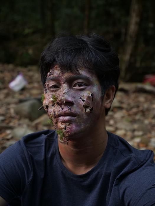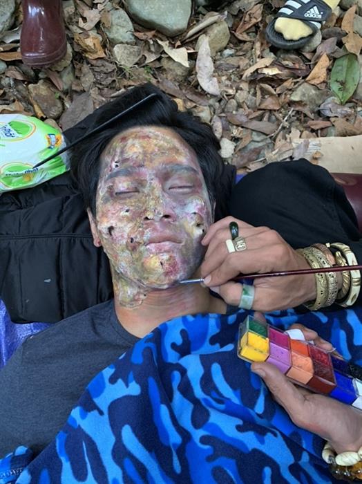 Chuyên gia hóa trang Tony Nguyễn Art cố gắng thể hiện những vết thương theo đúng theo thực tế của một người bị thương trong rừng sâu. “Điều khó khăn với tôi là thể hiện sự chân thực của vết thương. Khi mới bị, nó sẽ là máu tươi nhưng khi qua vài ngày hoặc vài tiếng sau, vết máu và vết bầm sẽ đổi màu ngay”, anh nói.