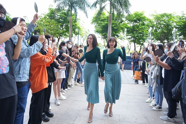Sáng ngày 1/10/2022, Ninh Dương Lan Ngọc và Kaity Nguyễn xuất hiện tại buổi fanmeeting chung của cả hai, trong bộ trang phục giống hệt nhau khiến các fan một phen phải “mắt chữ O mồm chữ A”. Tạo hình “chị em sinh đôi” của hai ngọc nữ màn bạc mang đến sự thú vị lẫn tò mò với những người hâm mộ có mặt trong buổi off-fan ngày hôm nay. Bởi lẽ, theo thông tin nội dung phim Cô Gái Từ Quá Khứ, hai nhân vật Hoàng Quyên – Quỳnh Yên của Lan Ngọc và Kaity Nguyễn đối đầu nhau “nảy lửa”, vạch trần những sự thật về quá khứ tăm tối của Ms Q.