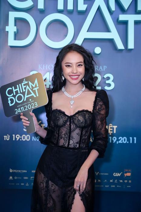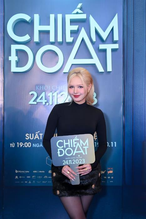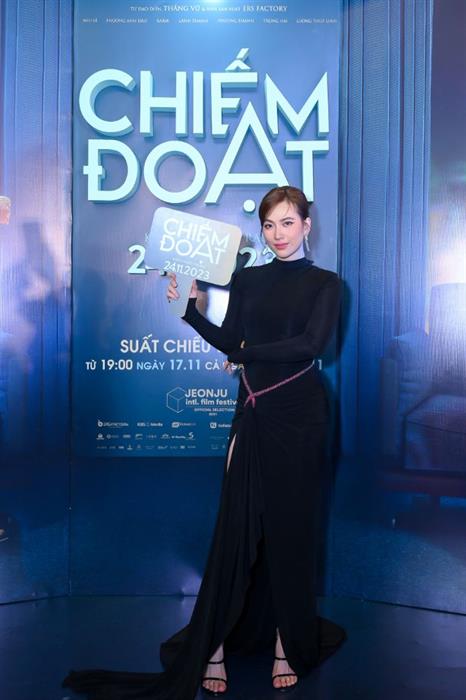 Chiếm Đoạt đánh dấu lần chạm ngõ điện ảnh đầu tiên của nàng hậu đa tài - Lương Thùy Linh. Xuất hiện trên thảm đỏ Chiếm Đoạt, Lương Thuỳ Linh toả sáng bởi thần thái sang trọng, quý phái.