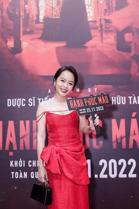 Tái xuất thảm đỏ, NS Kim Huyền lựa chọn váy đỏ đơn giản nhưng không kém phần quyến rũ