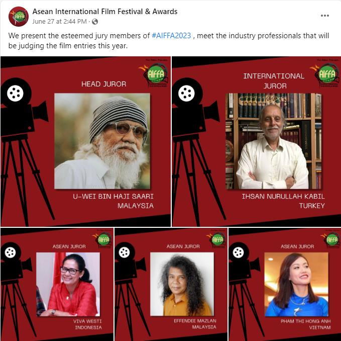 5 thành viên Hội đồng Giám khảo AIFFA 2023 – Ảnh: Facebook LHP
