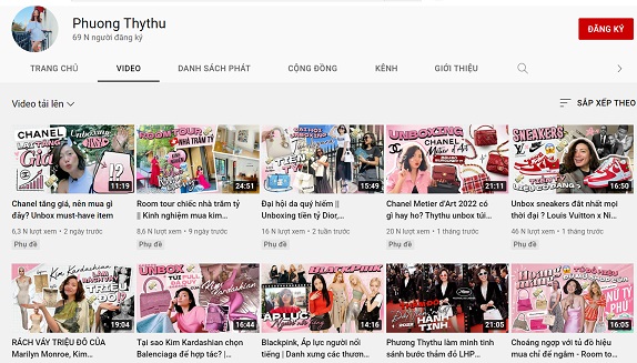 Ngoài những món đồ hiệu đắt giá, kênh YouTube của Thythu còn chia sẻ vlog tham dự những sự kiện đình đám tầm cỡ thế giới như Liên hoan phim Cannes với sự xuất hiện của các ngôi sao đình đám
