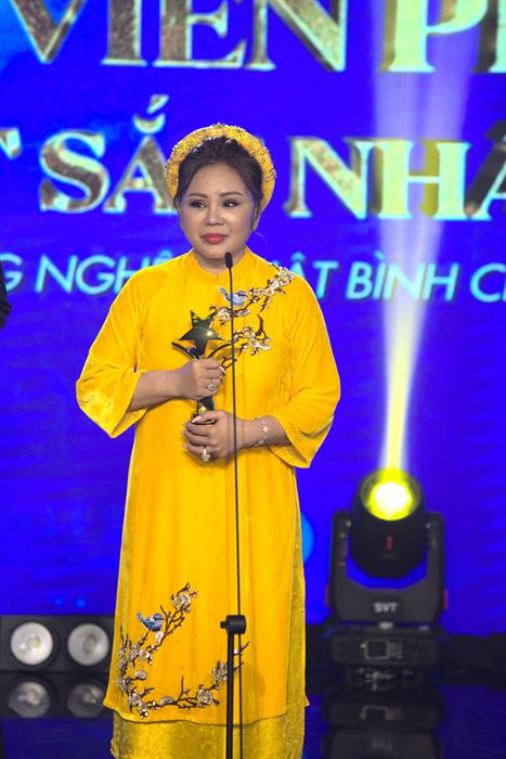 ‘Dì Lệ’ Lê Giang háo hức xen lẫn xúc động khi chạm tay vào cúp Ngôi Sao Xanh
